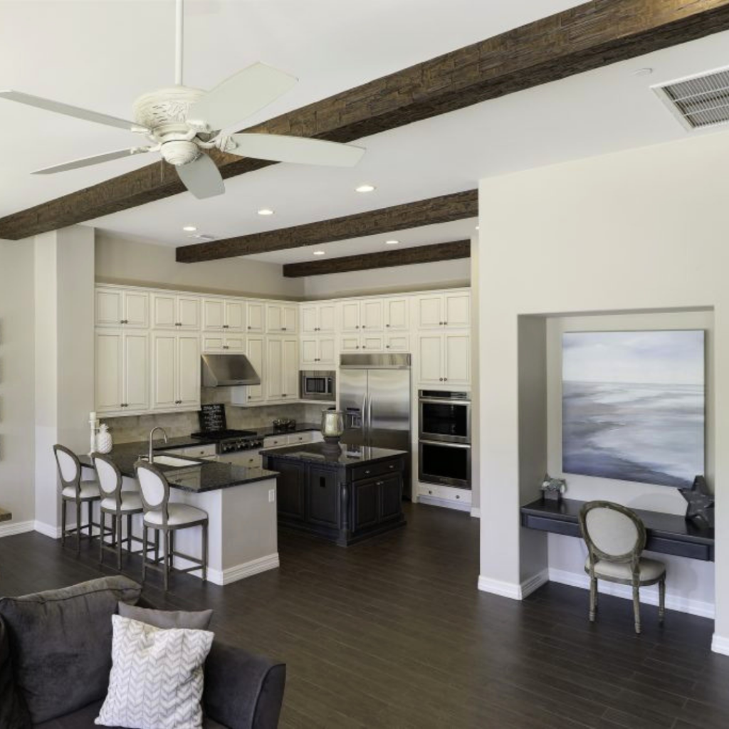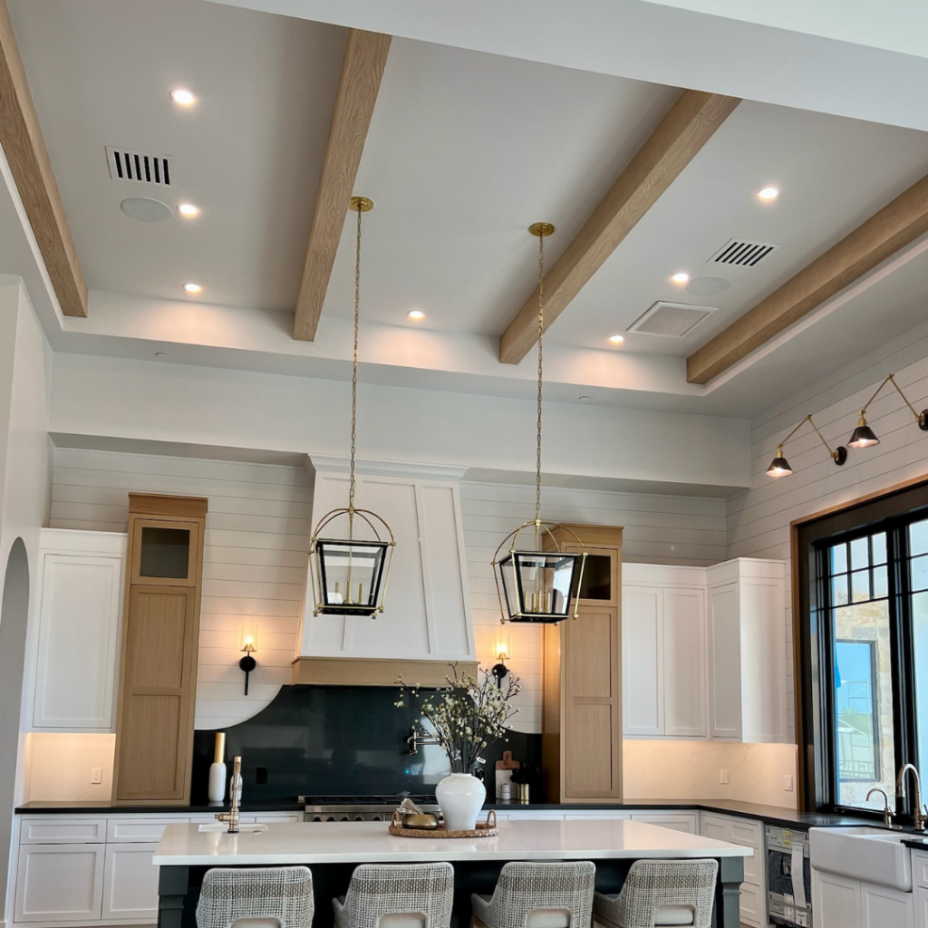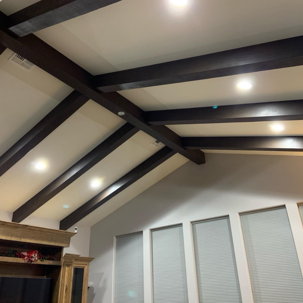 Open floor plans are highly desirable, but they sometimes lack clearly defined boundaries between living zones. We love utilizing faux wood beams to visually separate your kitchen, dining, and lounging areas. Strategically placed ceiling accents create subtle, elegant divisions, ensuring your expansive great room feels intimately organized rather than overwhelmingly cavernous.