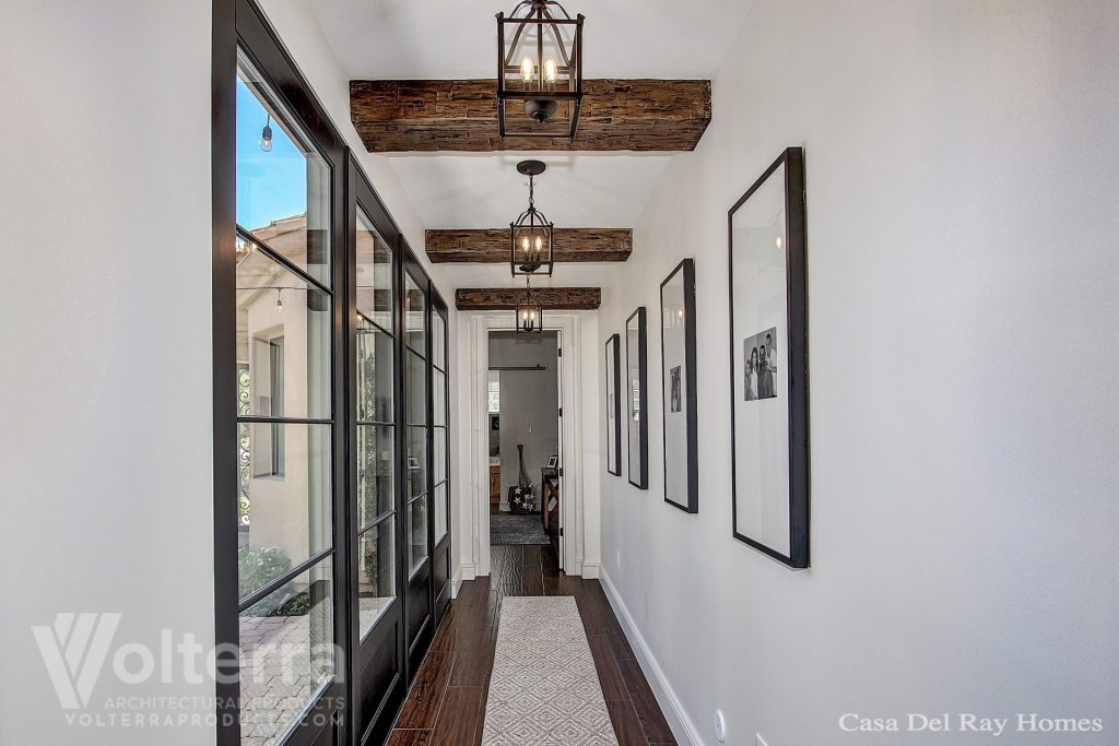 Hand Hewn Light Walnut Flat Truss With Faux Steel Plates