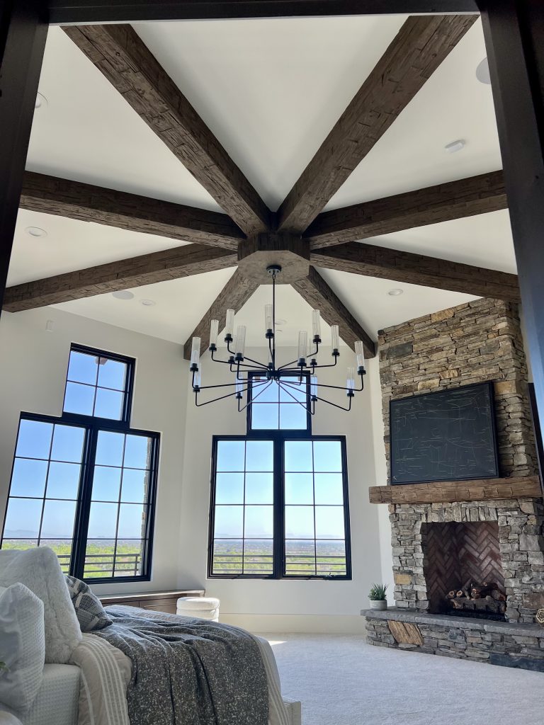 Dark Walnut Hand Hewn Custom Arched King Trusses