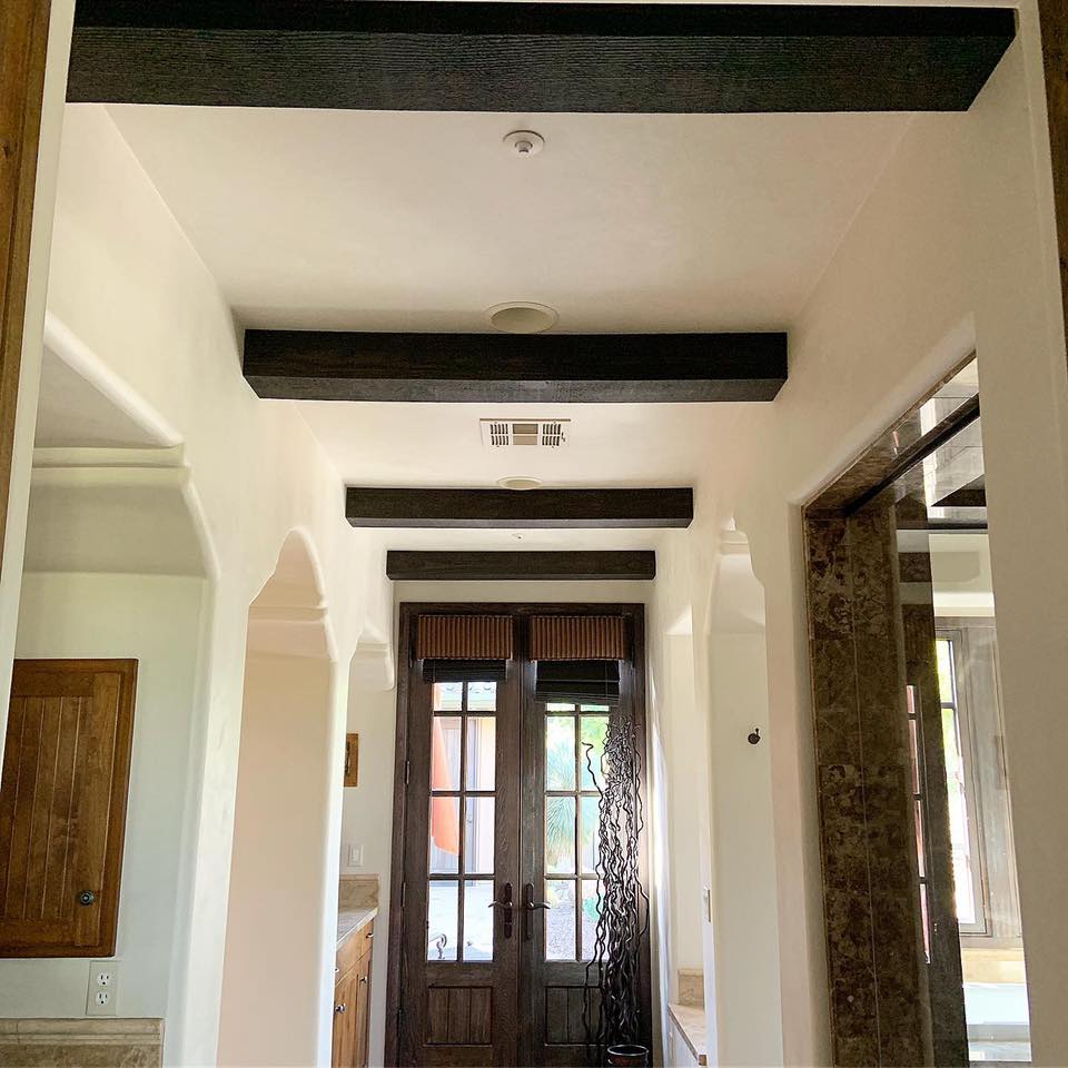 Hand Hewn Dark Walnut Ridge and Rafter Beams